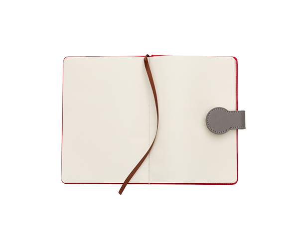 Bloco de anotações personalizado com fechamento imantado. Capa produzida em tecido sintético texturizado, contém aproximadamente 96 folhas amarelas sem pauta e marcador de página em cetim.