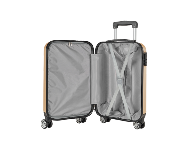 Mala de viagem executivo personalizada em ABS. Interior forrado, com divisória. 4 rodas duplas giratórias. Pega extensível em metal, com mola (altura pega estendida até 530 mm). Fecho de segurança com senha. Placa metálica removível, para fácil gravação. Capacidade até 34 L. Peso: 2,50 kg.