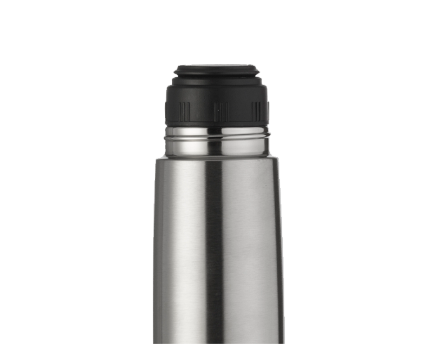 Garrafa térmica personalizada 350ml em inox com tampa rosqueável, tampa interna em plástico resistente (basta um clique para abrir ou fechar). Acompanha capa protetora de couro sintético com alça de nylon.